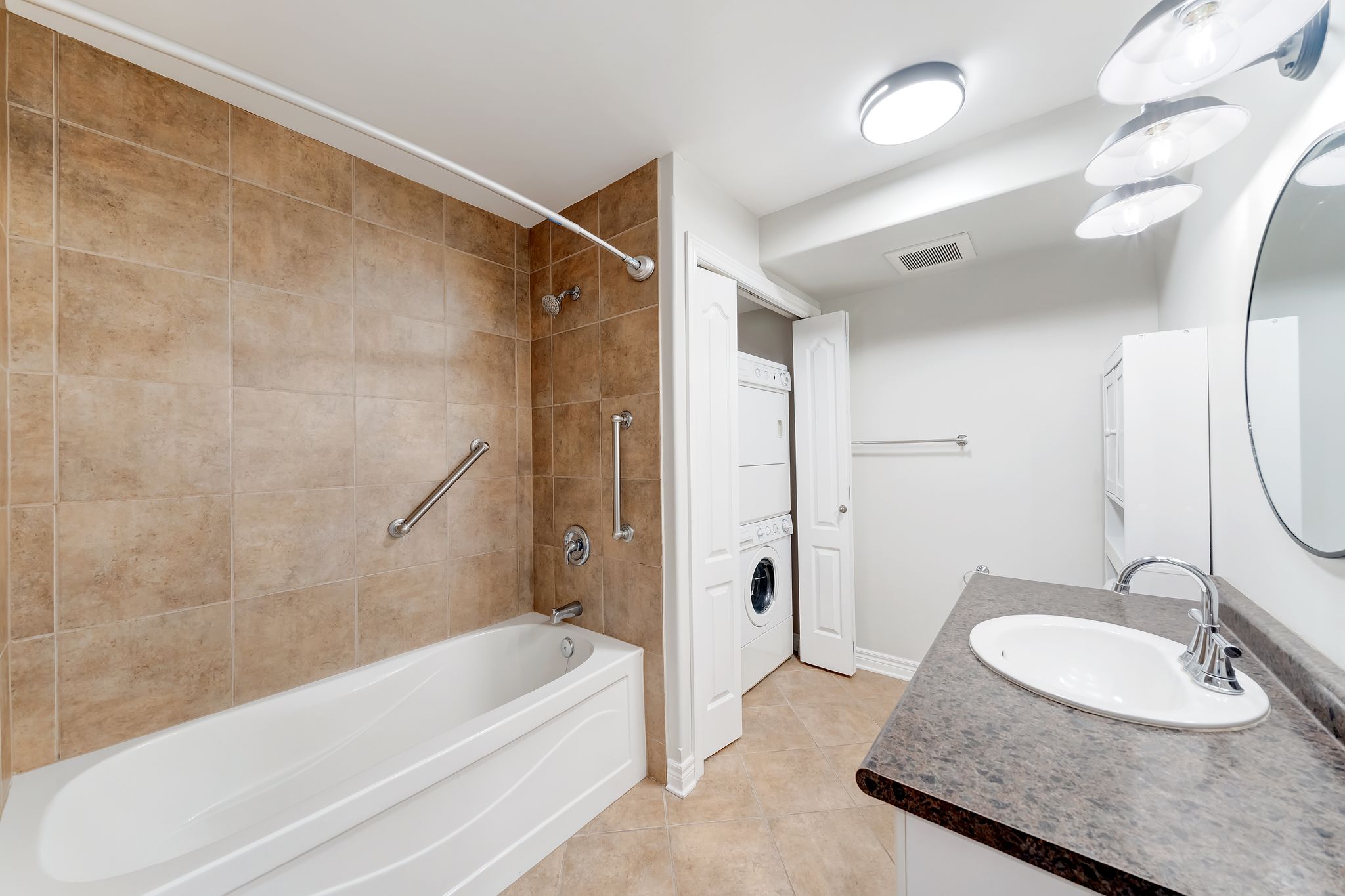 Completing the space is a four-piece bathroom, along with a stackable washer and dryer. Enjoy hardwood flooring, hardwood cabinetry, and a fully carpet-free interior.